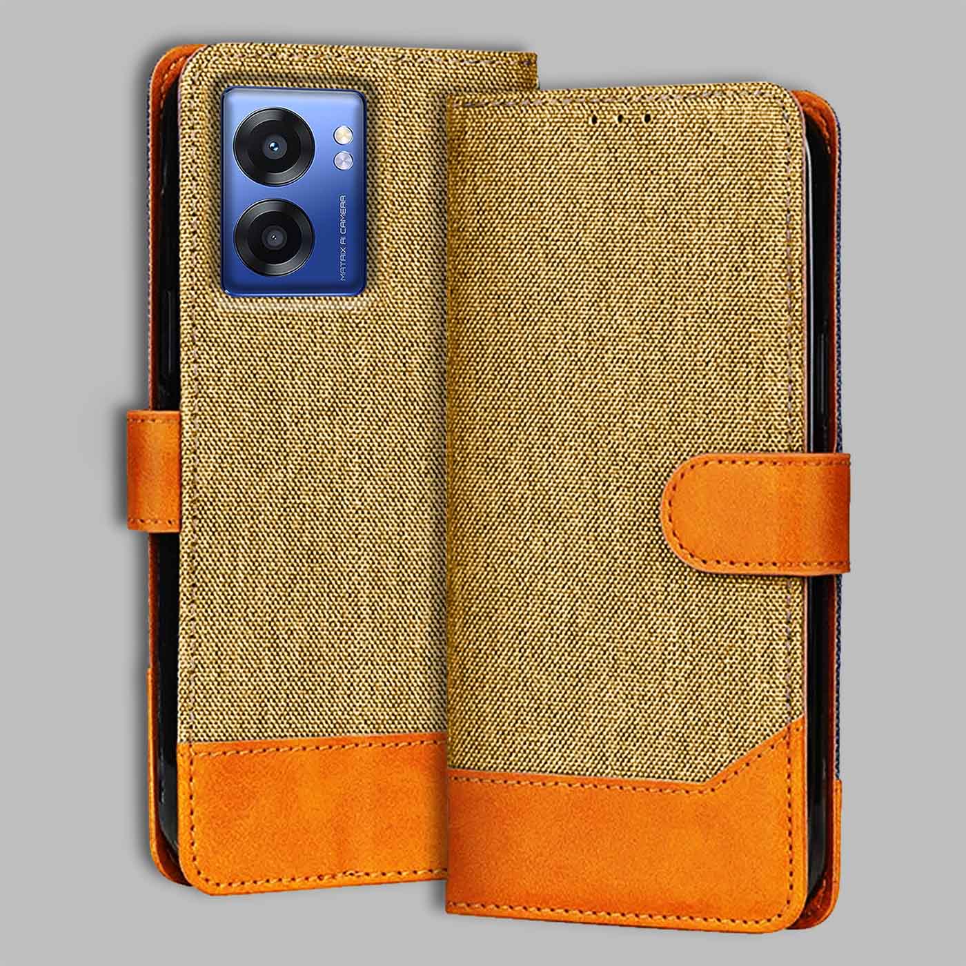 Realme Narzo 50 5G Dual Color Flip Cover | Denim & Leather - Light Brown