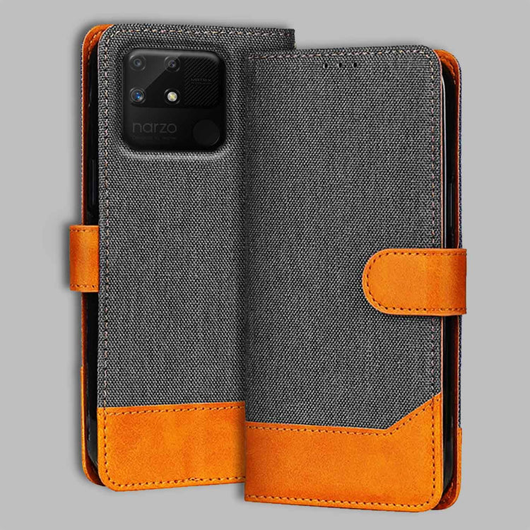 Realme Narzo 50A Denim Leather Flip Cover | Dual Color | Sleek & Durable - Grey