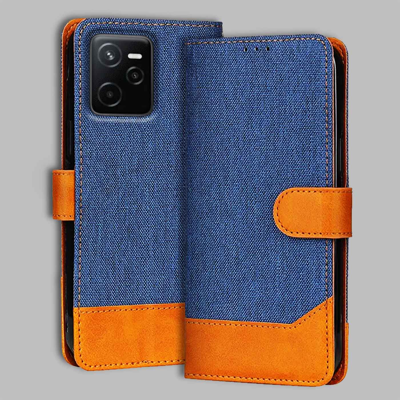 Upgrade your Realme Narzo 50A Prime with this stylish & durable denim and vegan leather flip cover!
