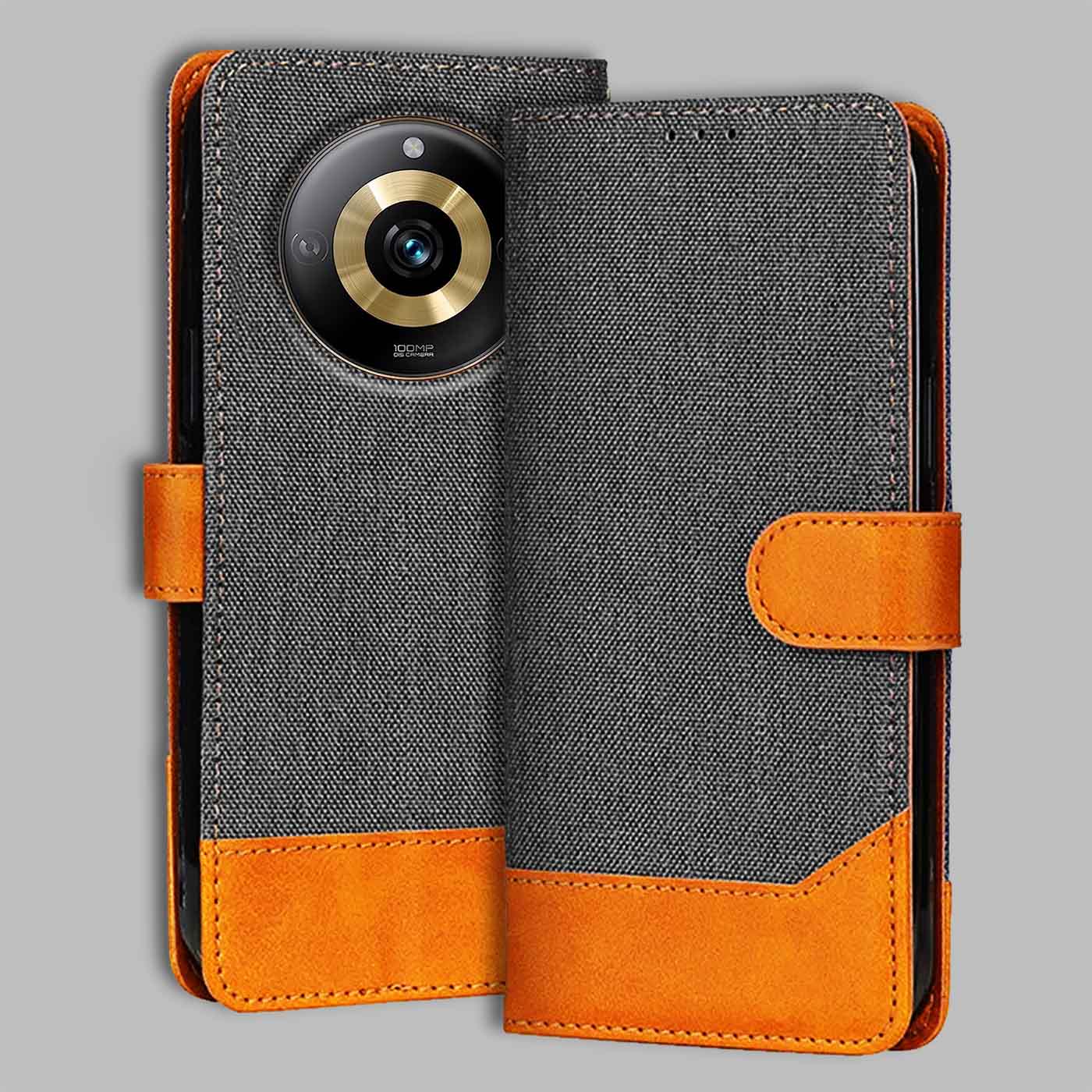 Realme Narzo 60 Pro 5G Denim Leather Flip Cover | Dual Color | Sleek & Durable - Grey