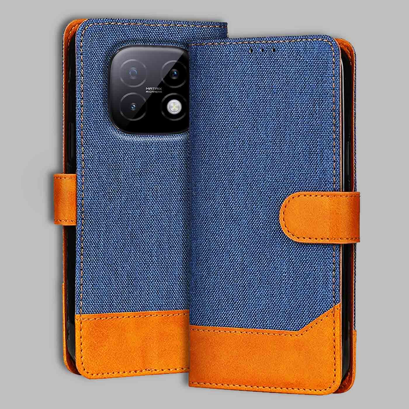 Upgrade your Realme Narzo 70 Turbo with this stylish & durable denim and vegan leather flip cover!