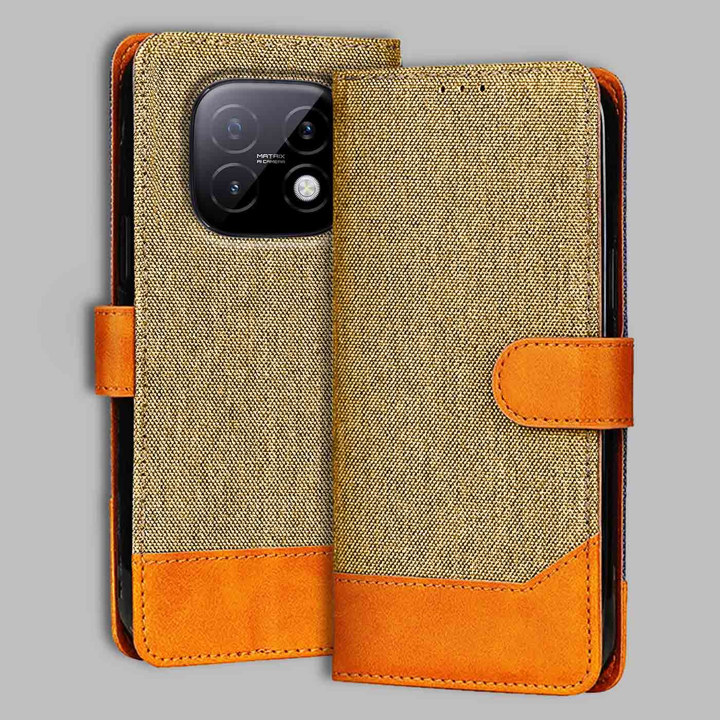 Realme Narzo 70 Turbo Dual-Tone Denim & Leather Flip Cover - Light Brown