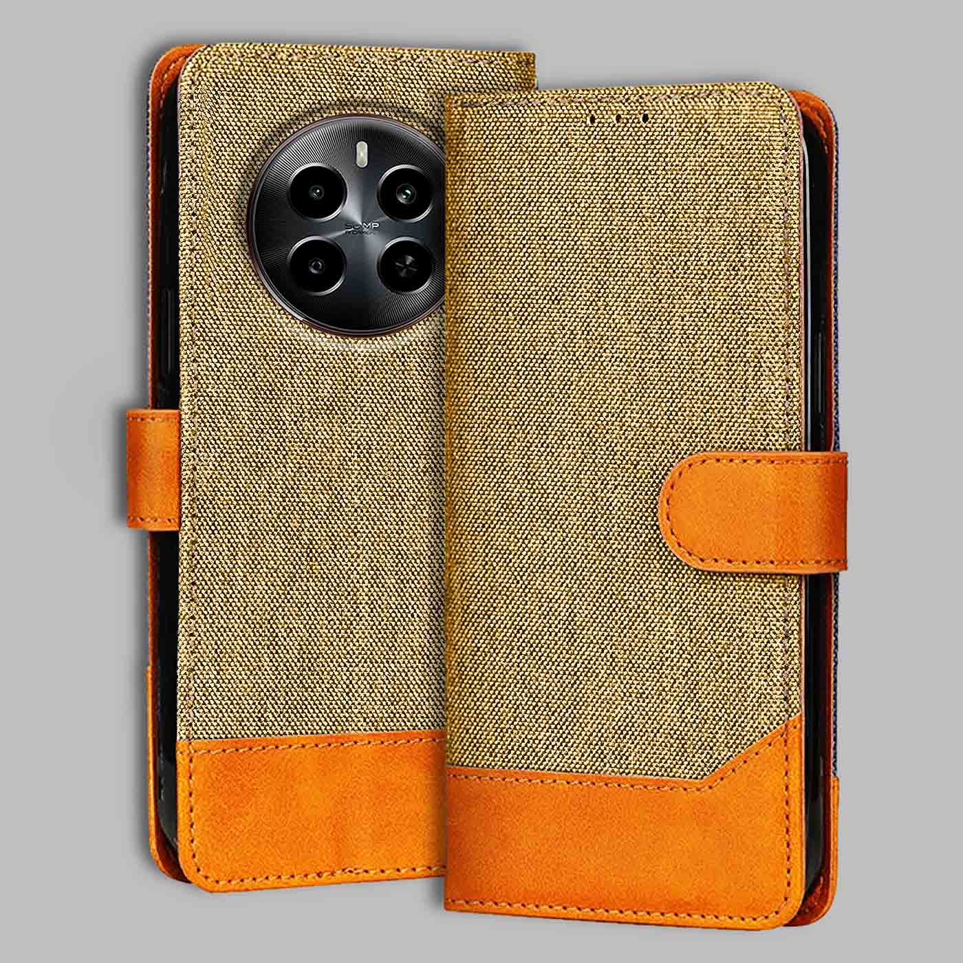 Realme P1 5G Dual Color Flip Cover | Denim & Leather - Light Brown