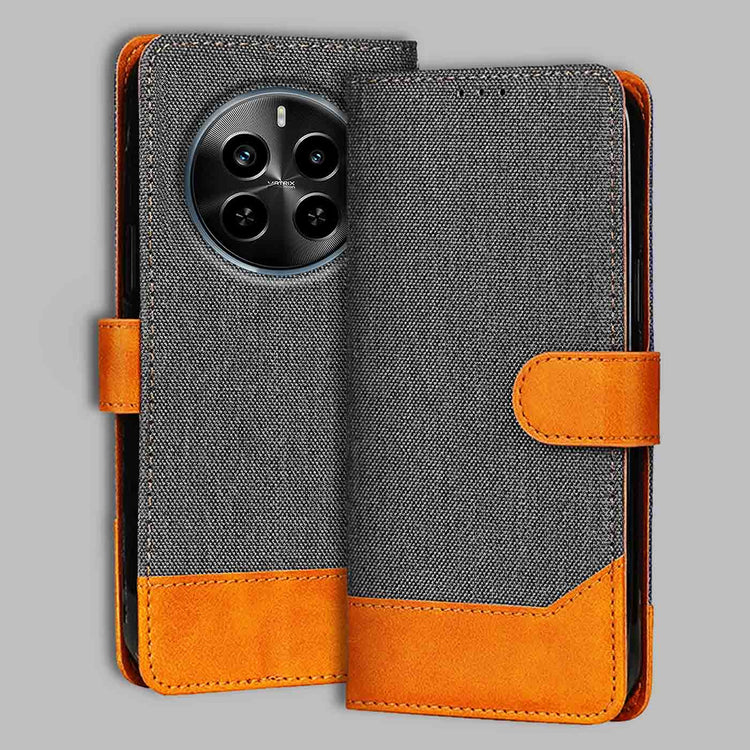 Realme P1 Pro 5G Dual-Tone Denim & Leather Flip Cover - Grey