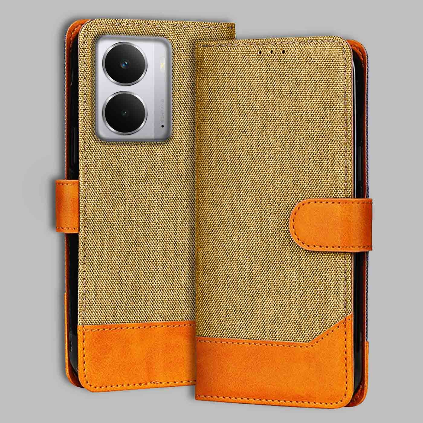 Realme P3 5G Dual-Tone Denim & Leather Flip Cover - Light Brown
