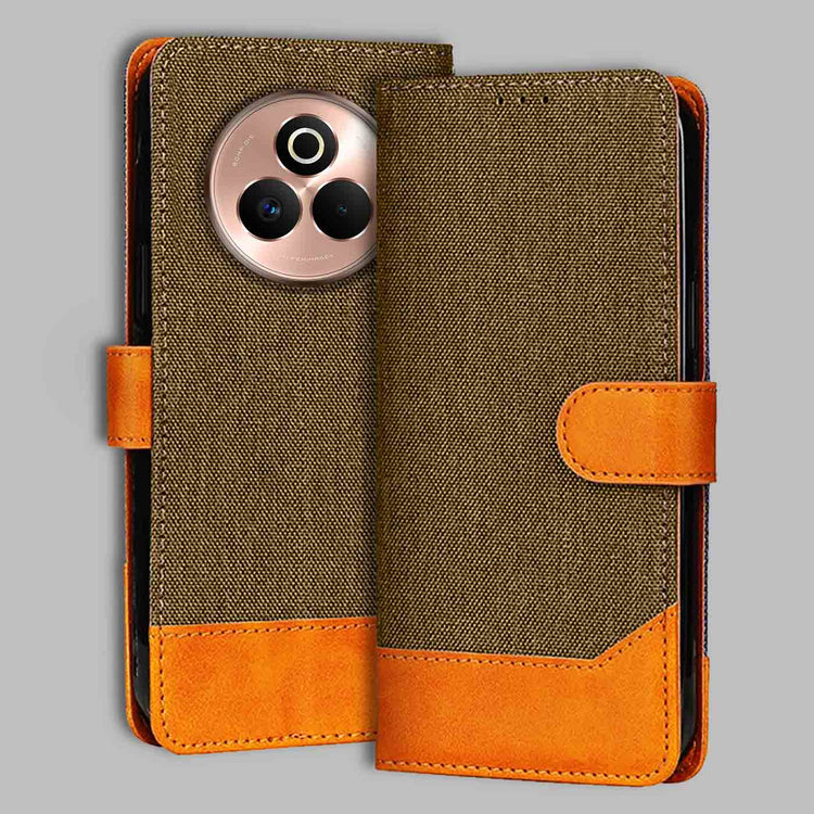Realme P3 Pro 5G Denim Leather Flip Cover | Dual Color | Sleek & Durable - Dark Brown