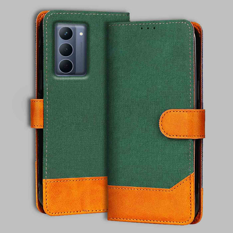 Realme P3X 5G Canvas & Suede Flip Cover | Dual Color | Stylish & Durable - Green