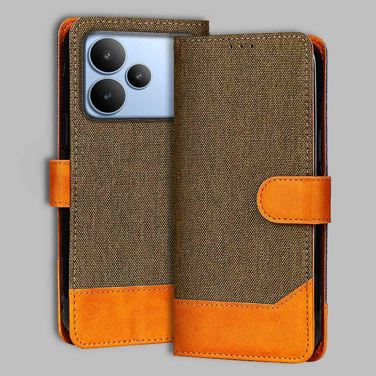 Realme P4 5G Dual Color Flip Cover | Denim & Leather - Dark Brown