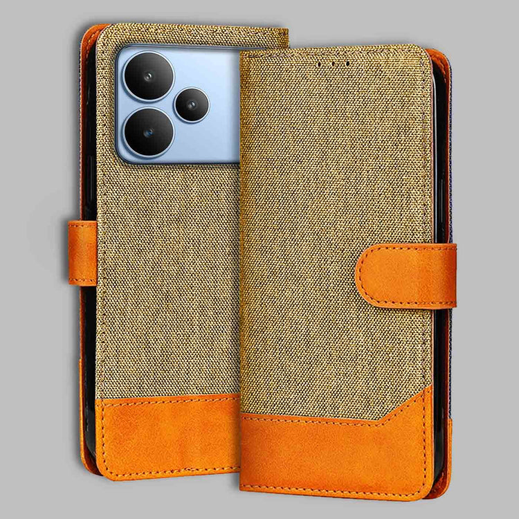 Realme P4 5G Dual-Tone Denim & Leather Flip Cover - Light Brown