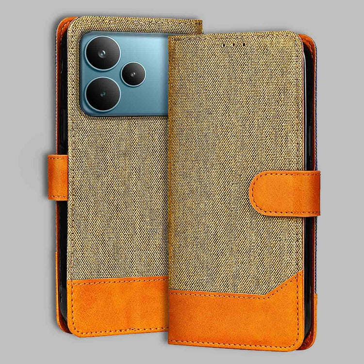 Realme P4 Pro 5G Dual-Tone Denim & Leather Flip Cover - Light Brown