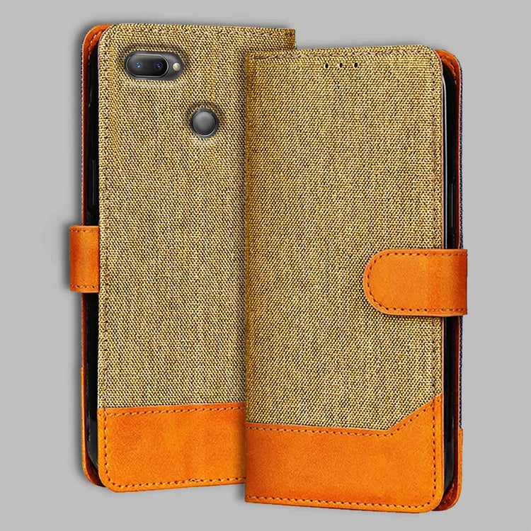 Realme U1 Dual Color Flip Cover | Denim & Leather - Light Brown