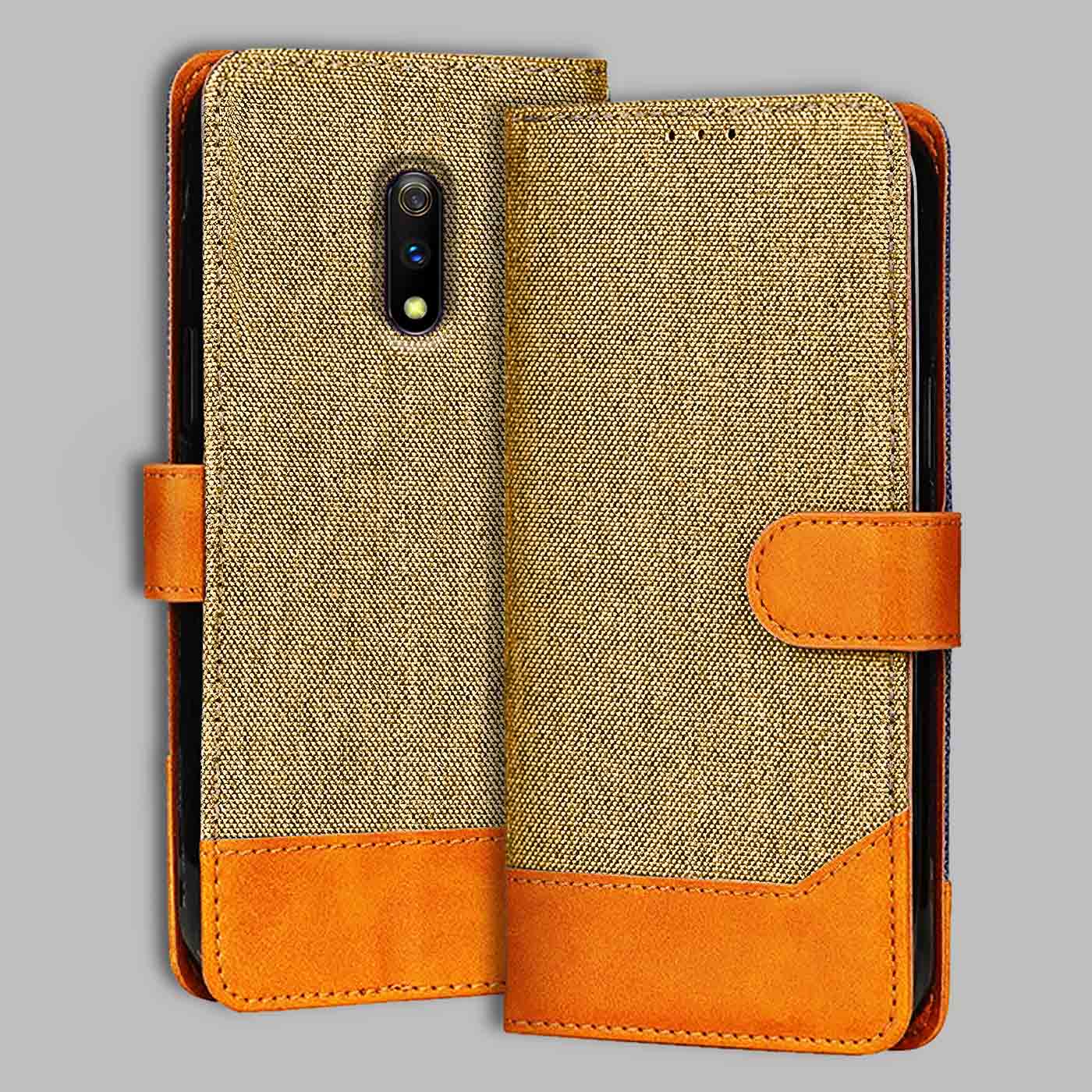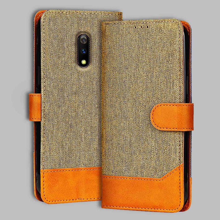 Realme X Dual Color Flip Cover | Denim & Leather - Light Brown