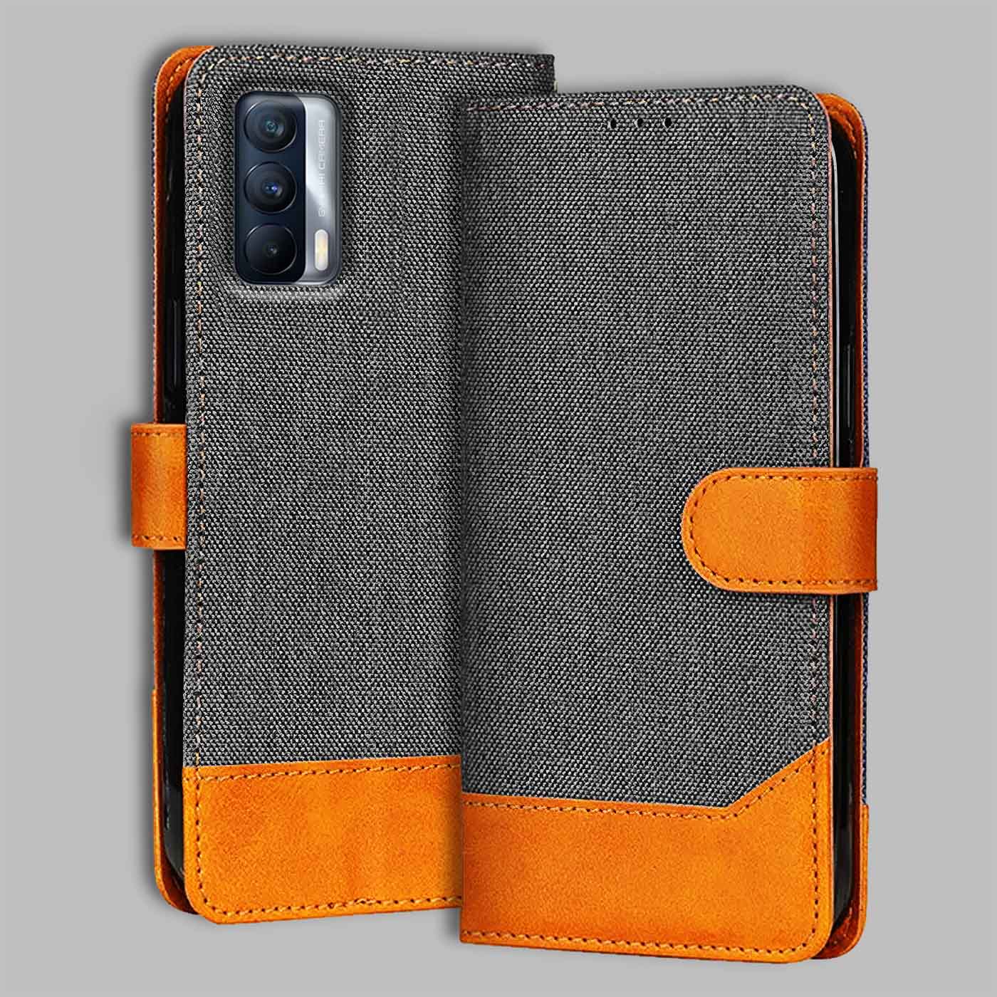 Realme X7 Denim Leather Flip Cover | Dual Color | Sleek & Durable - Grey