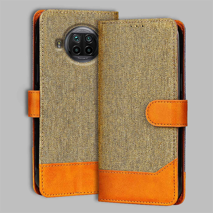 Redmi 10i Dual Color Flip Cover | Denim & Leather - Light Brown
