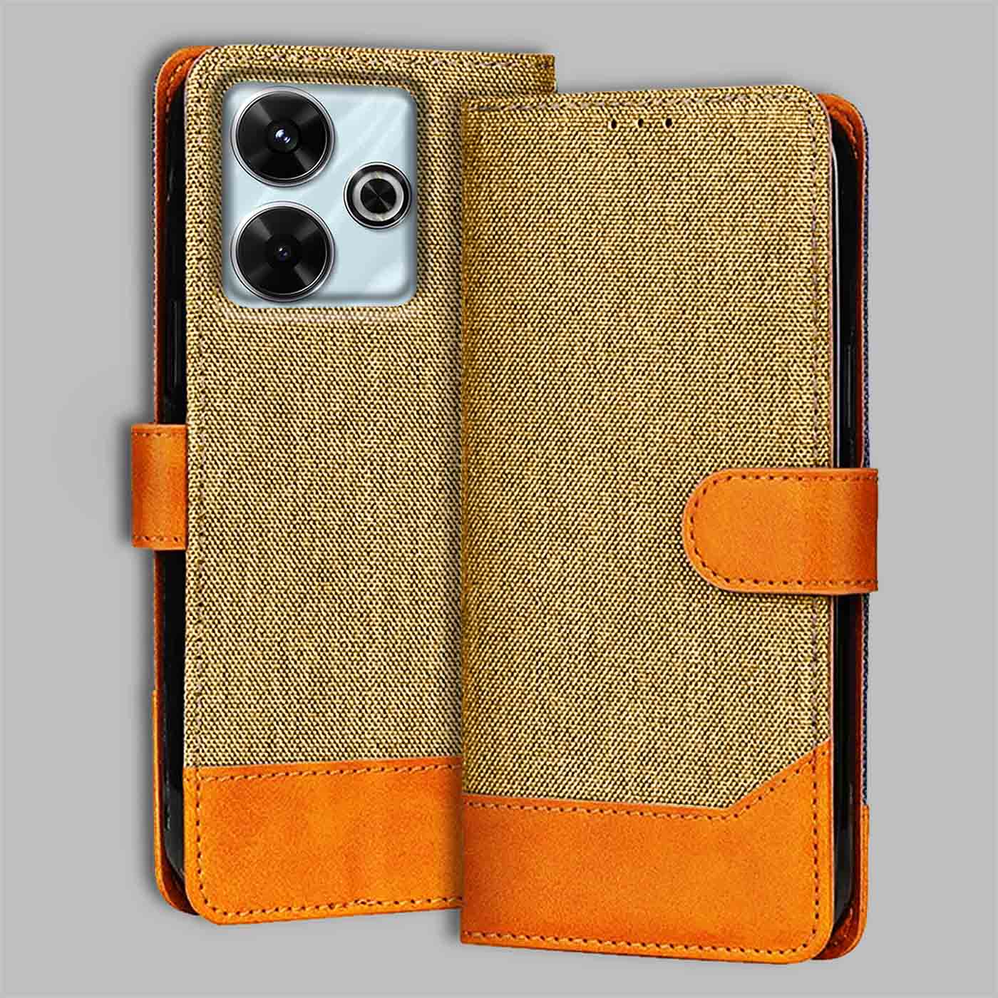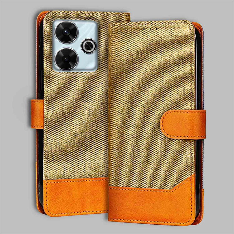 Redmi 13 5G Dual-Tone Denim & Leather Flip Cover - Light Brown