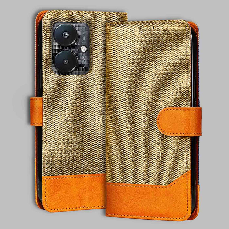 Redmi 13C 5G Dual Color Flip Cover | Denim & Leather - Light Brown