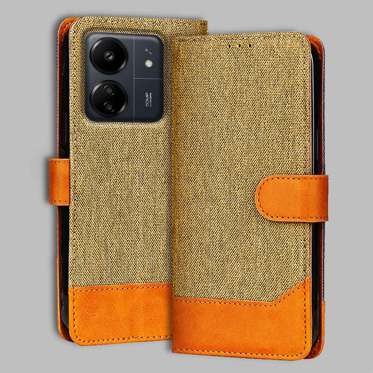 Redmi 13C Dual Color Flip Cover | Denim & Leather - Light Brown