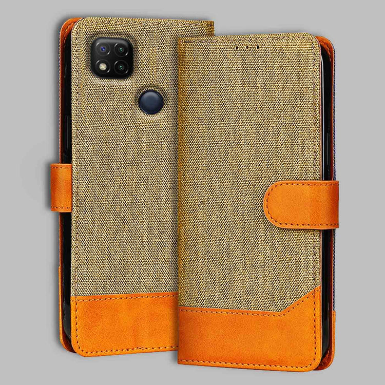 Redmi 9 Dual Color Flip Cover | Denim & Leather - Light Brown