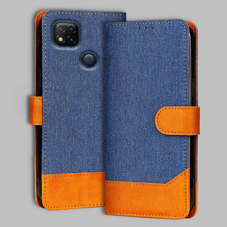 Redmi 9 Dual-Tone Denim & Leather Flip Cover - Blue