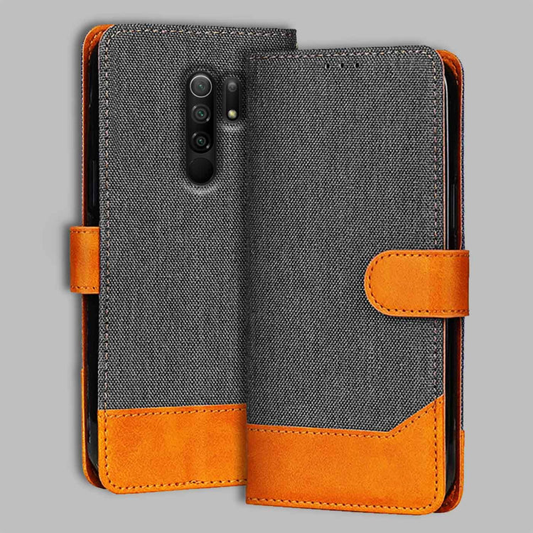 Redmi 9 Prime Denim Leather Flip Cover | Dual Color | Sleek & Durable - Grey