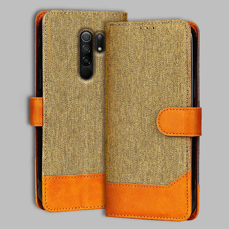 Redmi 9 Prime Dual Color Flip Cover | Denim & Leather - Light Brown
