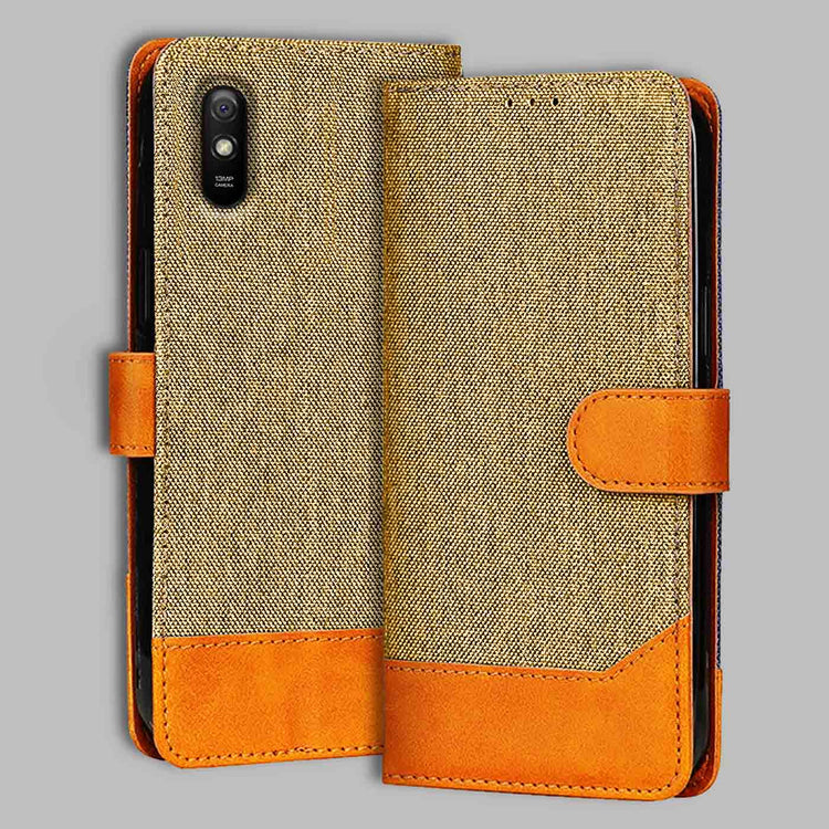 Redmi 9A Dual Color Flip Cover | Denim & Leather - Light Brown