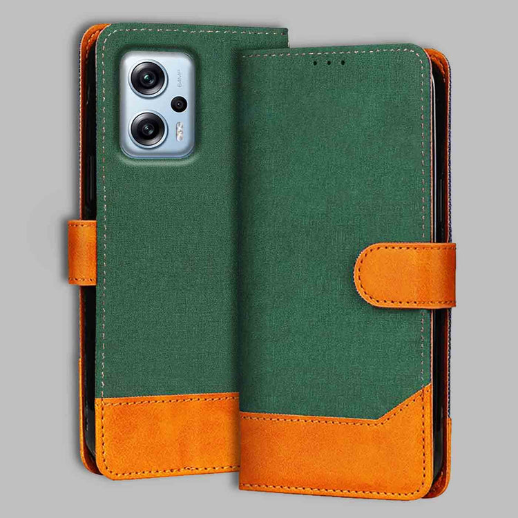 Redmi K50i Canvas & Suede Flip Cover | Dual Color | Stylish & Durable - Green