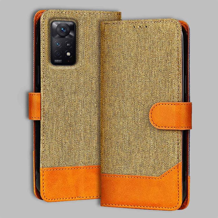 Redmi Note 11 Pro Plus Dual Color Flip Cover | Denim & Leather - Light Brown