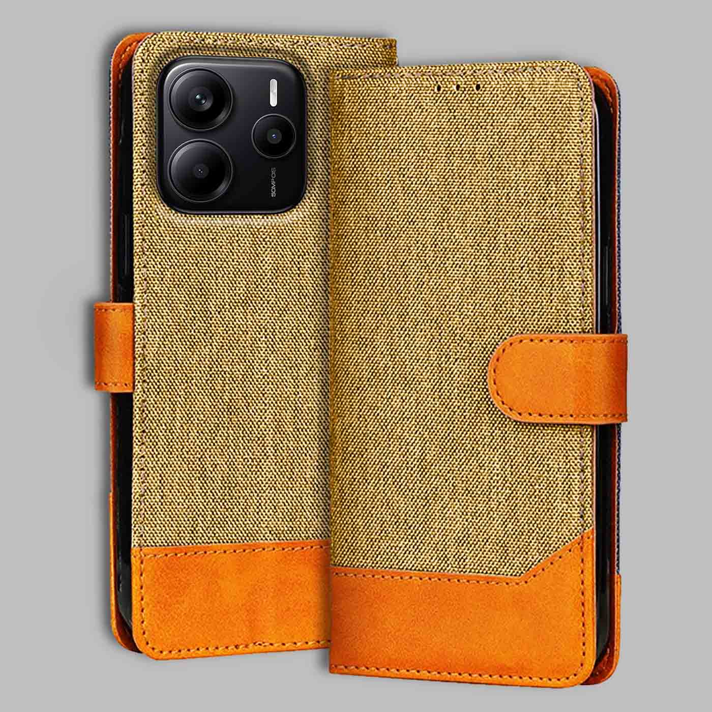 Redmi Note 14 5G Dual-Tone Denim & Leather Flip Cover - Light Brown