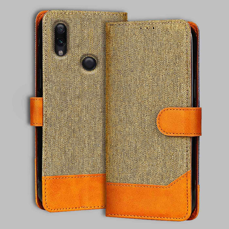 Redmi Note 7 Dual Color Flip Cover | Denim & Leather - Light Brown