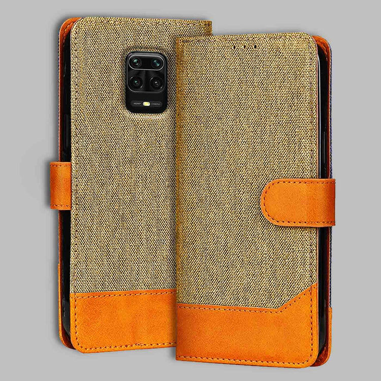 Redmi Note 9 Pro Dual Color Flip Cover | Denim & Leather - Light Brown