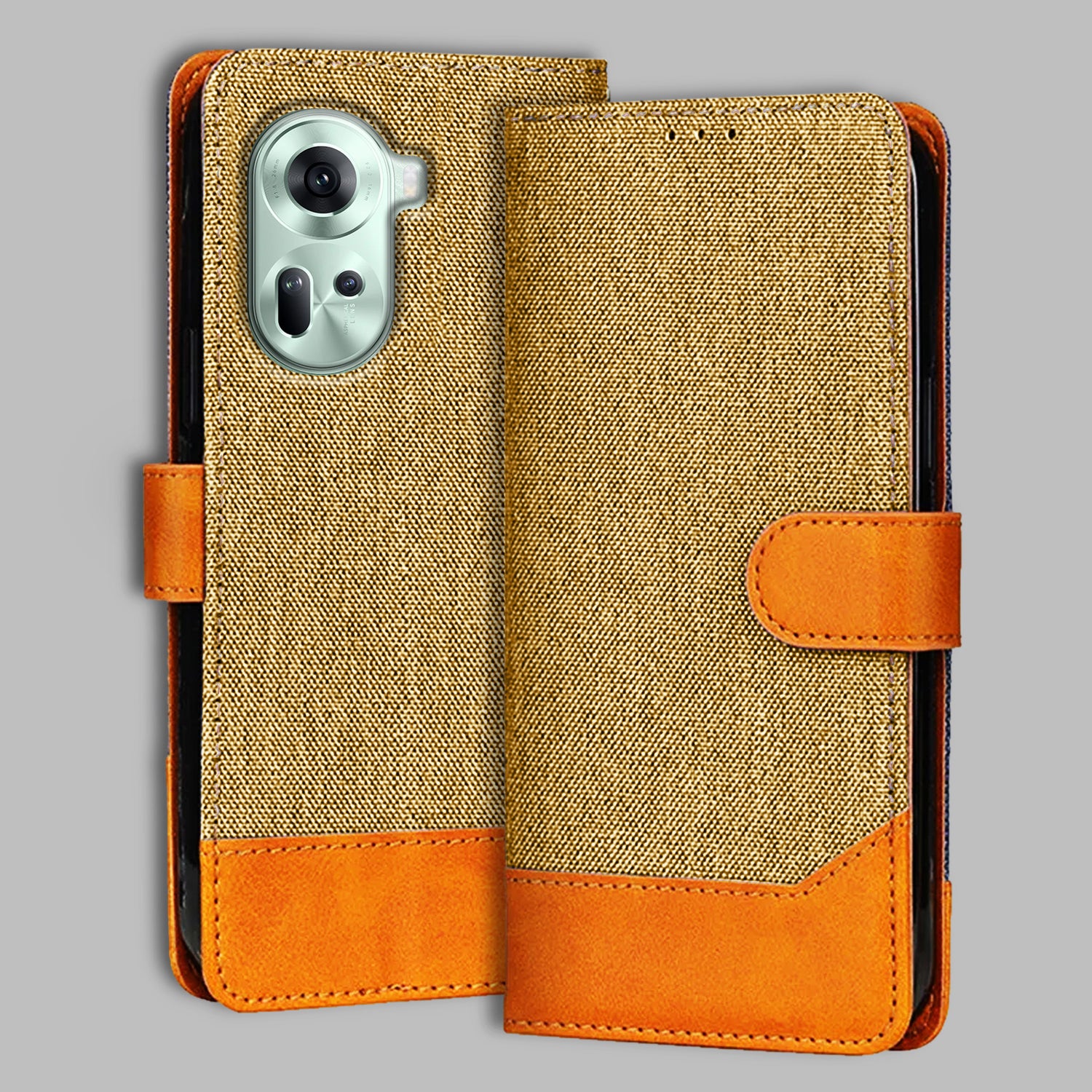 Reno 11 5G Dual Color Flip Cover | Denim & Leather - Light Brown