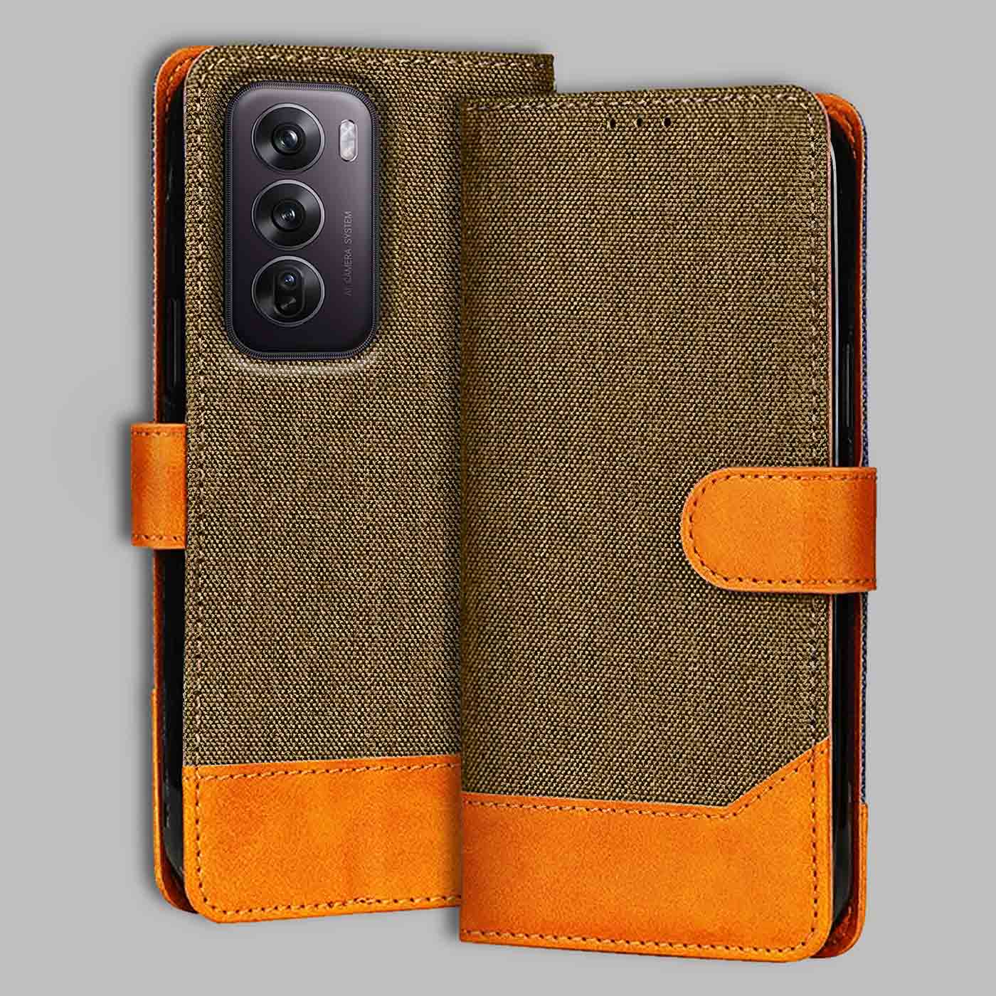 Reno 12 Pro 5G Dual Color Flip Cover | Denim & Leather - Dark Brown