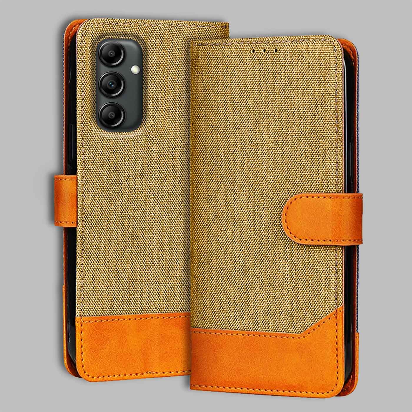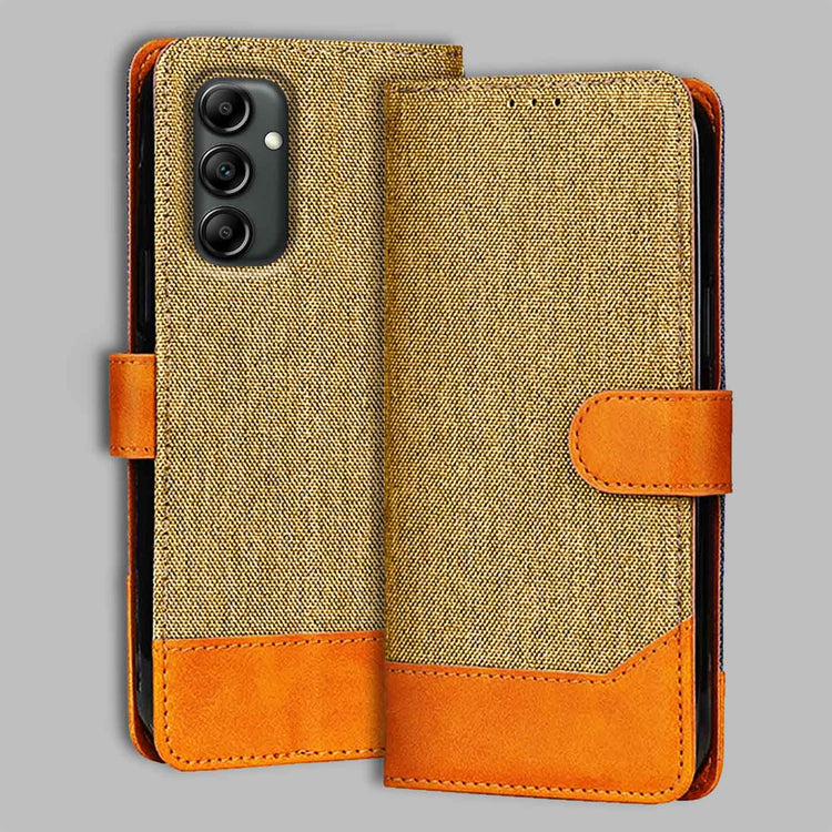 Samsung A14 5G Dual Color Flip Cover | Denim & Leather - Light Brown