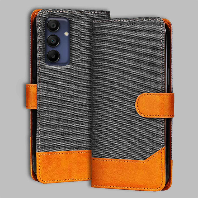 Samsung A15 5G Denim Leather Flip Cover | Dual Color | Sleek & Durable - Grey