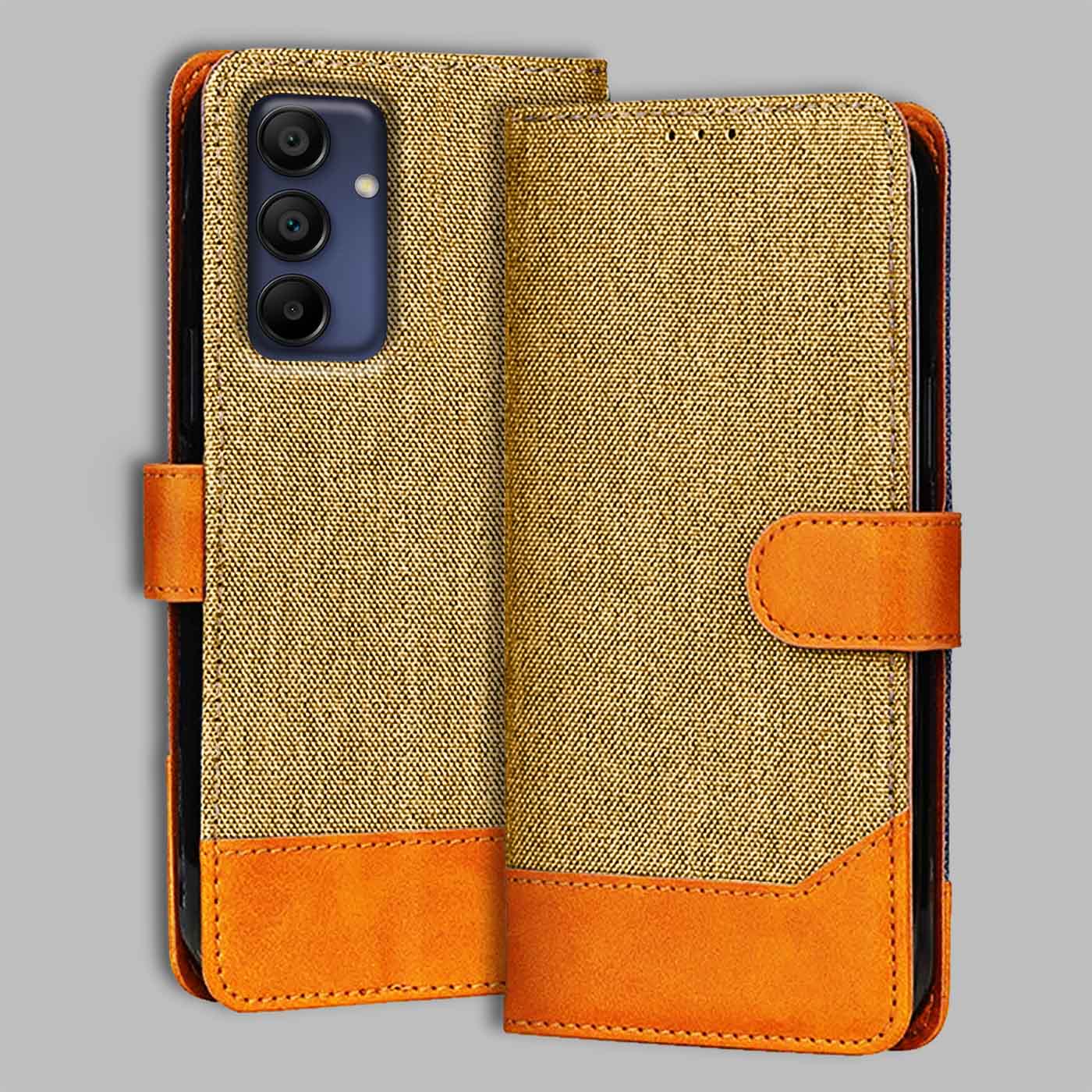 Samsung A15 5G Dual Color Flip Cover | Denim & Leather - Light Brown