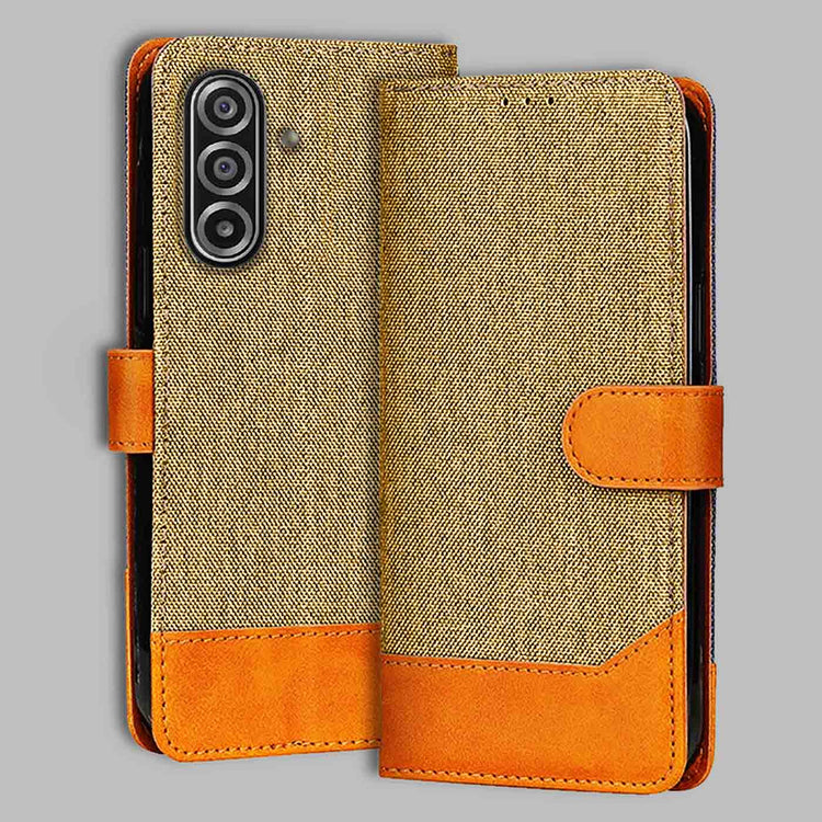 Samsung A17 5G Dual-Tone Denim & Leather Flip Cover - Light Brown