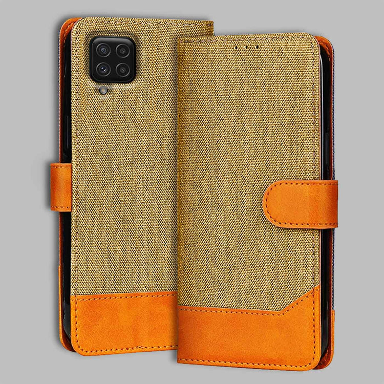 Samsung A22 4G Dual Color Flip Cover | Denim & Leather - Light Brown