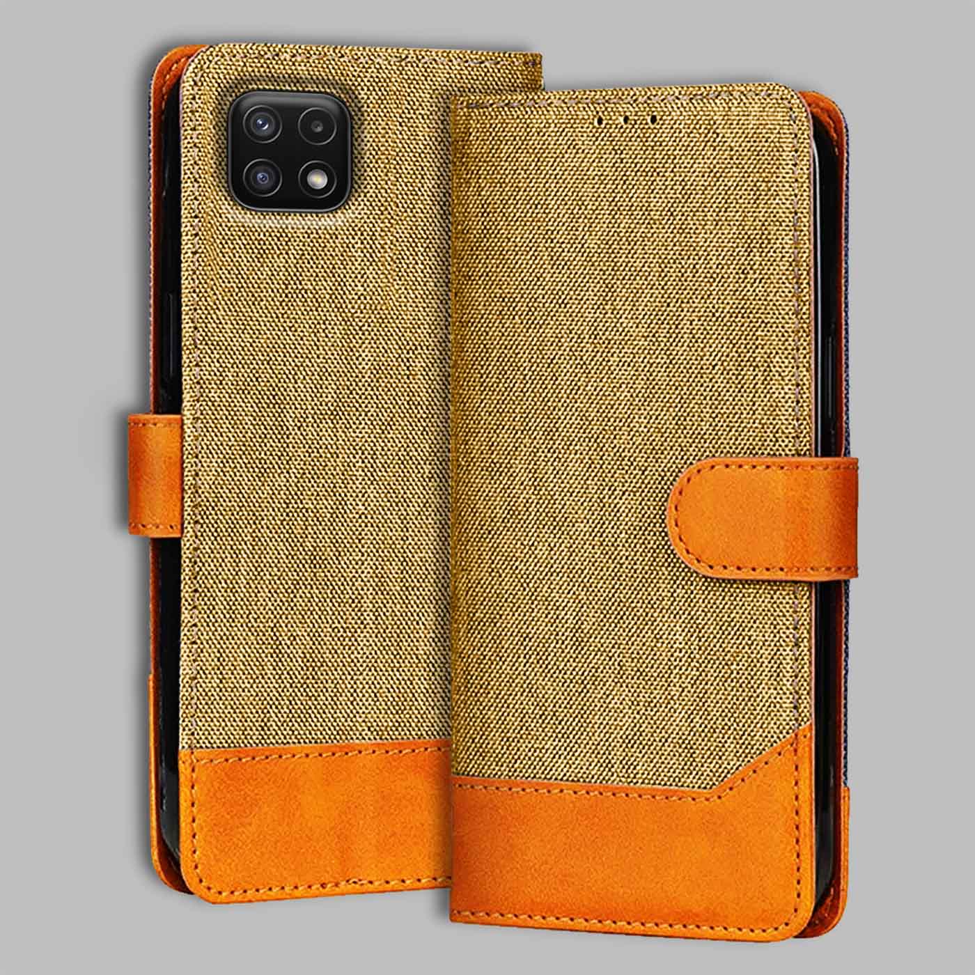Samsung A22 5G Dual Color Flip Cover | Denim & Leather - Light Brown