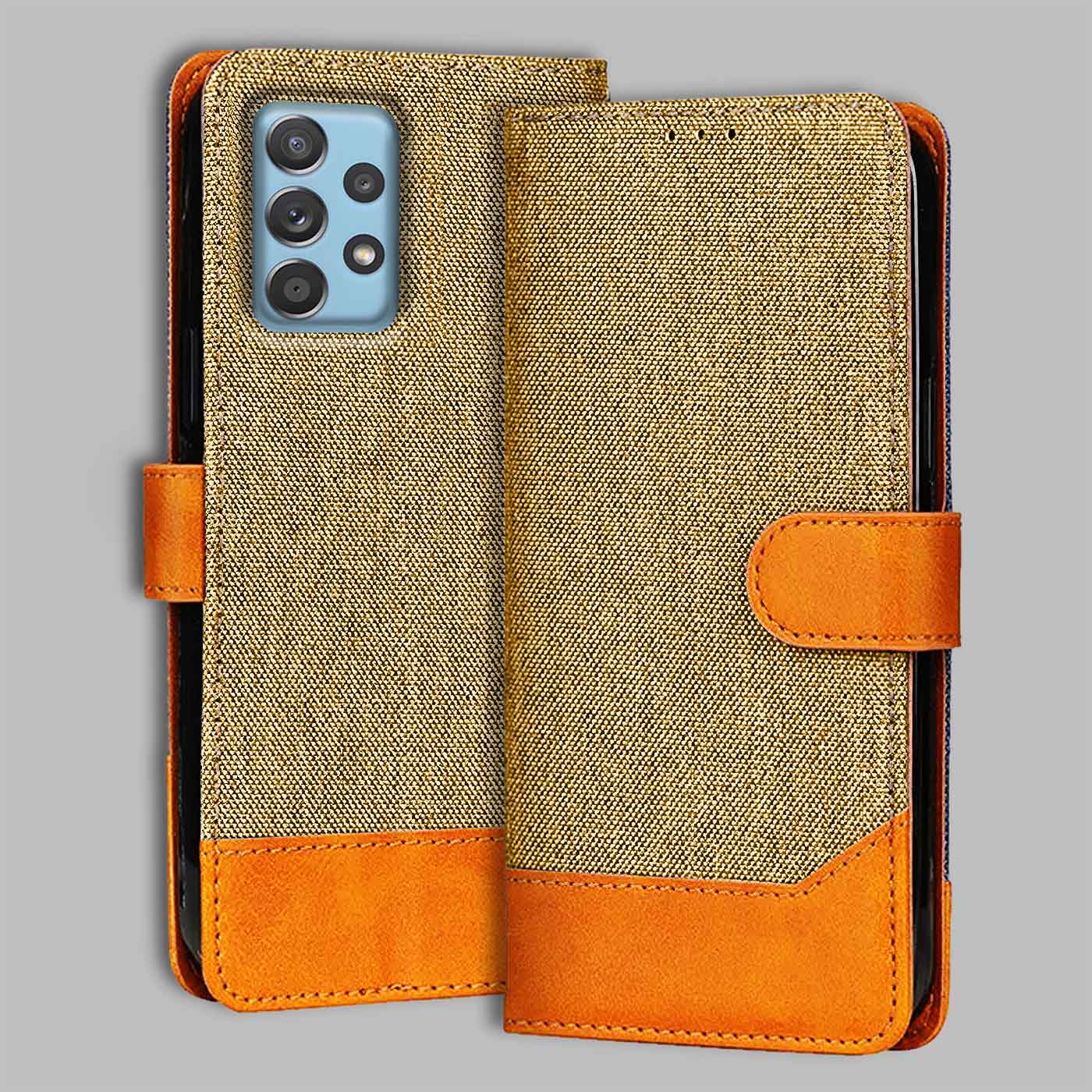 Samsung A52 Dual Color Flip Cover | Denim & Leather - Light Brown