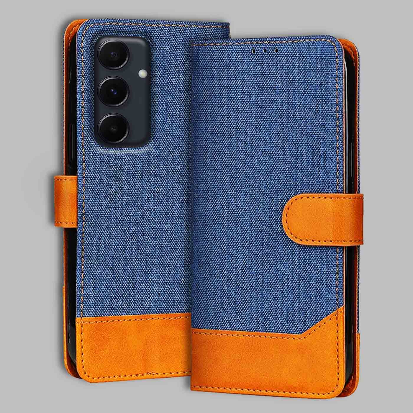 Samsung A55 5G Denim Leather Flip Cover | Dual Color | Sleek & Durable - Blue