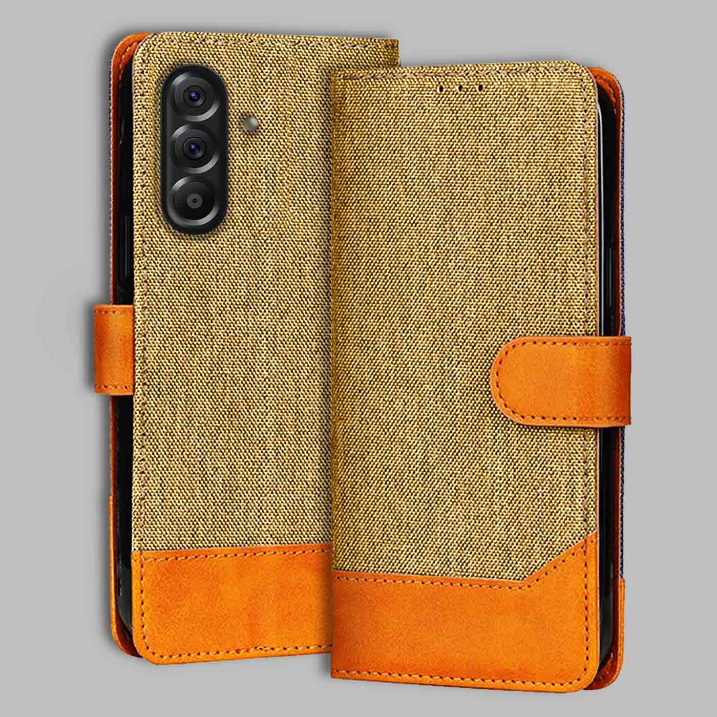 Samsung A56 5G Dual Color Flip Cover | Denim & Leather - Light Brown