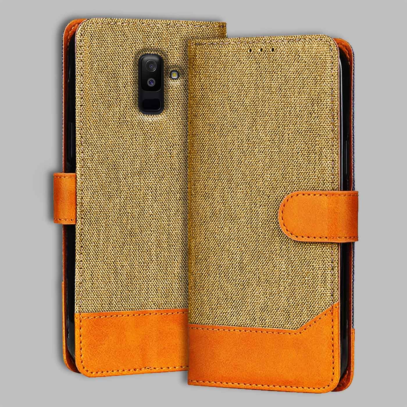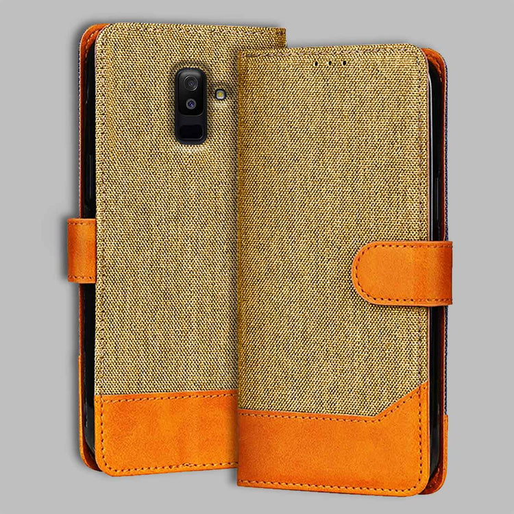 Samsung A6 Plus Dual Color Flip Cover | Denim & Leather - Light Brown
