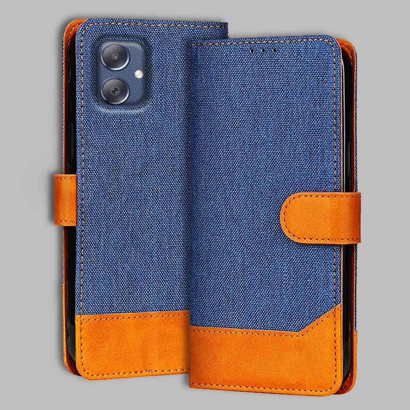Samsung F05 Denim Leather Flip Cover | Dual Color | Sleek & Durable - Blue