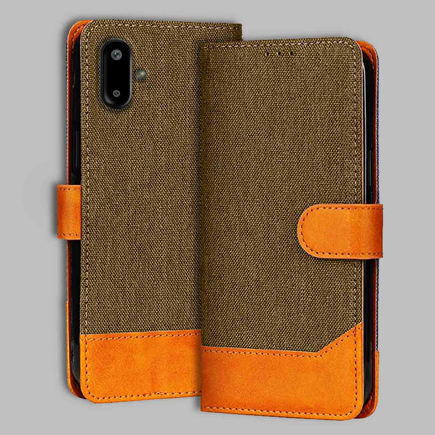Upgrade your Samsung F06 5G with this stylish & durable denim and vegan leather flip cover!