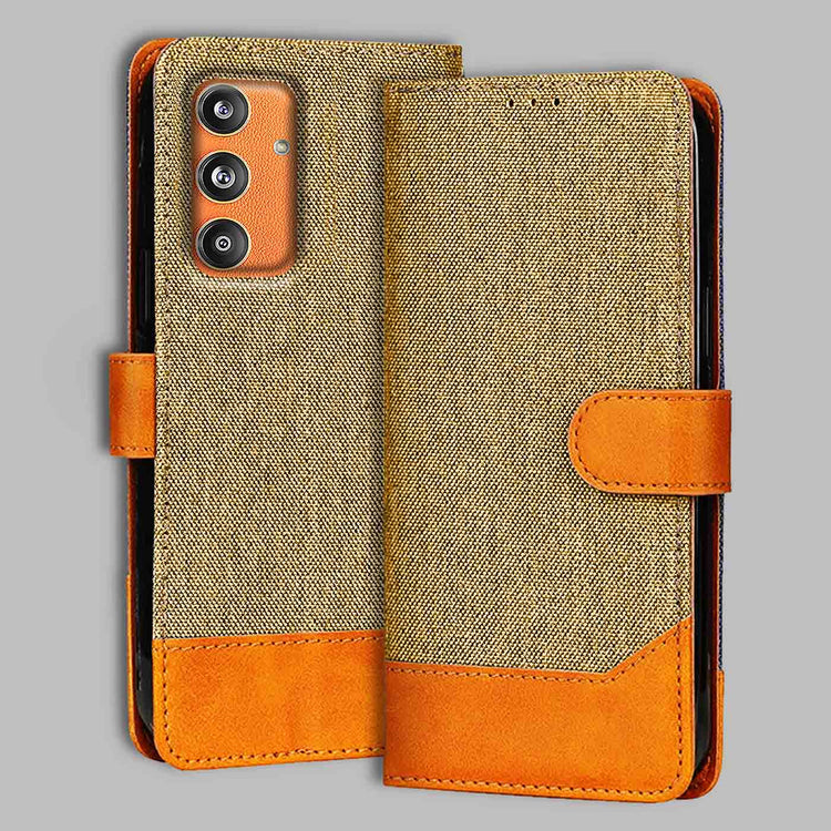 Samsung F55 5G Dual Color Flip Cover | Denim & Leather - Light Brown