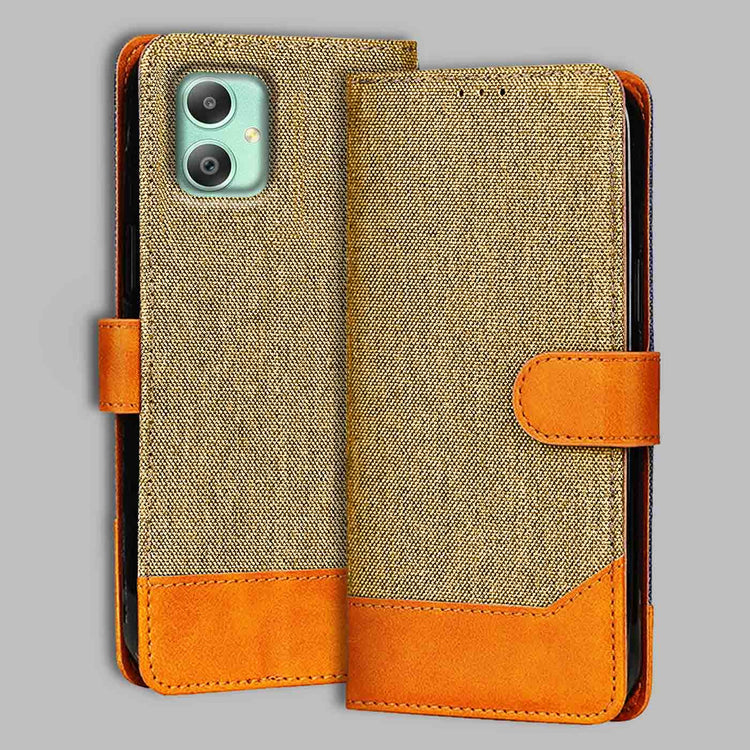 Samsung M05 Dual-Tone Denim & Leather Flip Cover - Light Brown