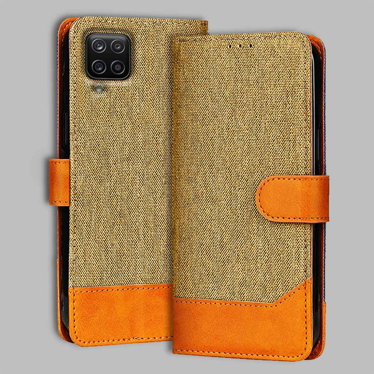 Samsung M12 Dual Color Flip Cover | Denim & Leather - Light Brown