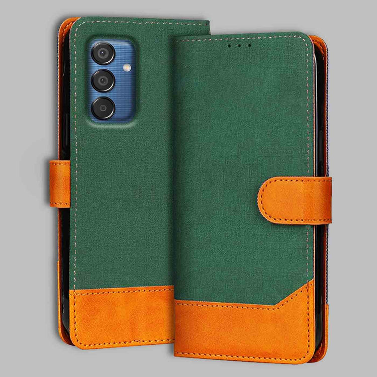 Samsung M15 Prime 5G Canvas & Suede Flip Cover | Dual Color | Stylish & Durable - Green