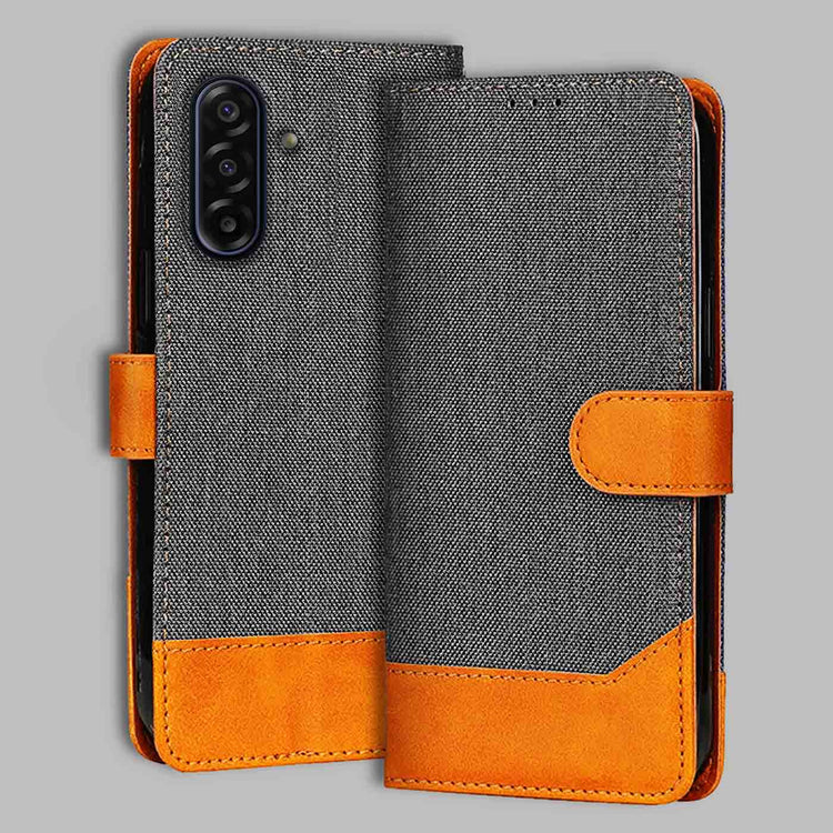 Samsung M17 5G Denim Leather Flip Cover | Dual Color | Sleek & Durable - Grey